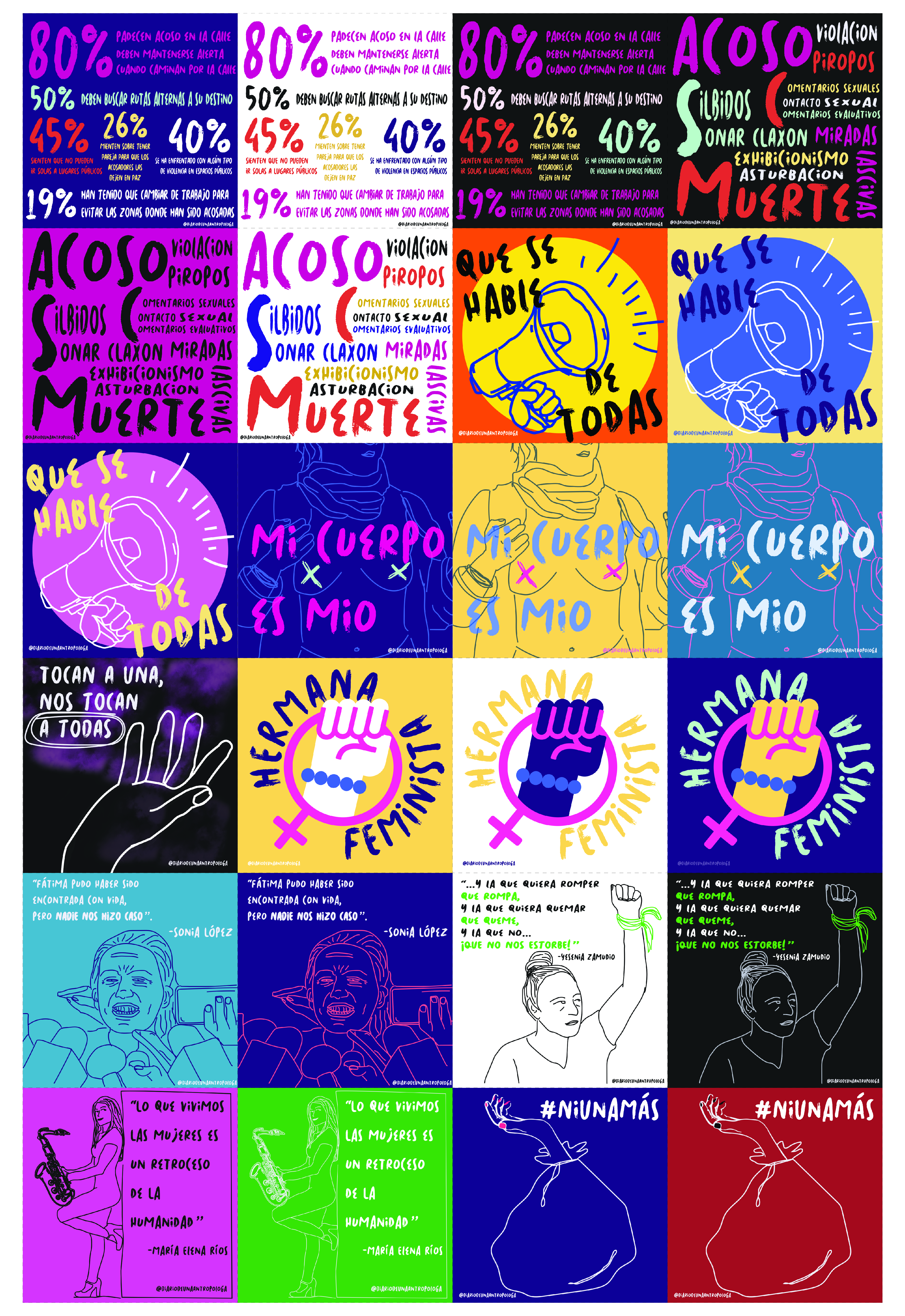 Realicé esta serie de stickers sobre el acoso, feminicidios y violencia contra la mujer junto a Leo Nava para apoyar a la causa feminista. Estaré regalando los stickers durante la marcha del 8M. Te dejo la opción de descarga gratuita para que uses los diseños.